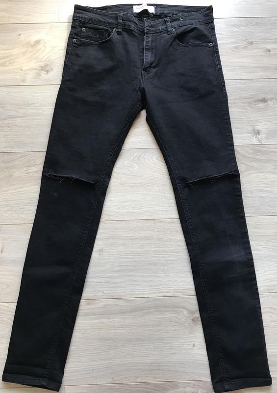 Б/У Чоловічі завужені чорні джинси pull&bear з прорізами на колінах Стан 5/5