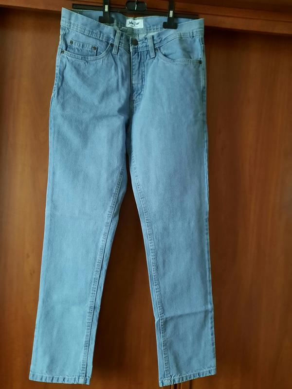 Продам новенькие классные фирменные джинсы John Baner, Германия. Размер EUR 46 GB 32R F/B 40. замеры: пояс 42.5 см, посадка спереди 29 см посадка сзади 34 см, ширина в районе беде 54 см, ширина штанины вверху 30 см, внизу 18 см. длина 104.5 см шаговый шов 80 см. Коттон плотный, без стрейча. Цвет голубой, как на первых трех фото, без желтизны.