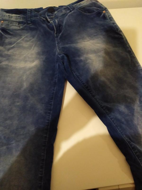 М'якенькі фірмові джинси, круто і модно виглядають,синьо -голубого кольору, з висвітленнями . Дуже зручні і приємні на дотик. Ця річ дійсно стане улюбленою. Орієнтуйтеся по замірам: ПО пояс-38, Довжина штанів 105, ПОБ 50, матня спереду -21, ззаду 27.