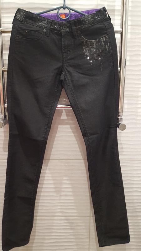 Стильные коттоновые брюки от Hugo Boss ( Хуго Бос) – немецкая компания, выпускающая элитную одежду, аксессуары и парфюмерия класса люкс. На сегодняшний день Hugo Boss является одним из самых известных Домов моды. Брюки выполнены из смесовой ткани (коттон + полиэстр) средней плотности. Застежка-молния спереди + пуговица-заклепка (брендованная). Спереди два боковых полукруглых внутренних кармана, усиленные заклепками (брендированные). Сзади два накладных кармана. Пояс и левый передний карман снизу декорированы пайеткой и вышивкой. Размер 27/34 пот 36-37 см поб 46-48 см ди 98 см шаг спереди 19см шаг сзади 33-35 см ширина штанины внизу 15см ×2 Будет ещё много фирменных вещей. Подписывайтесь! Имейте ввиду, что пока вы добавляете товар в ''избранное '',кто-то его уже покупает.И вы можете упустить свой шанс приобрести понравившуюся вещь. Дешевле покупать сразу несколько вещей-таким образом вы экономите на доставке.При покупке пяти и более вещей доставка бесплатная. Удачных и приятных покупок!
