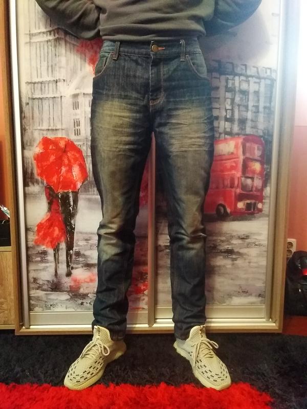 Брюки из плотного джинса. Длина 107см. Рост модели 180см. Стан новой вещи.