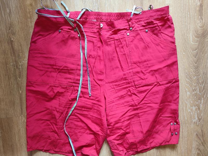 Длина 61 пояс 55, тянется посадка спереди 35, сзади 53 стегна 68 есть декоративный поясок ширина штанини 33