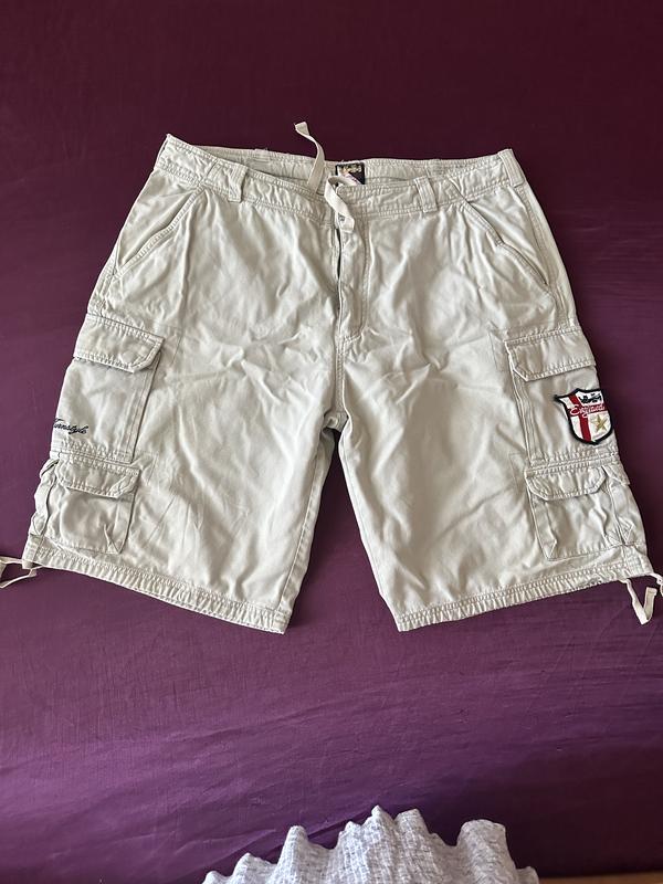 Удобные шорты с 10 карманами. В поясе- 49 см, длина - 59см. Цвет светло серые.