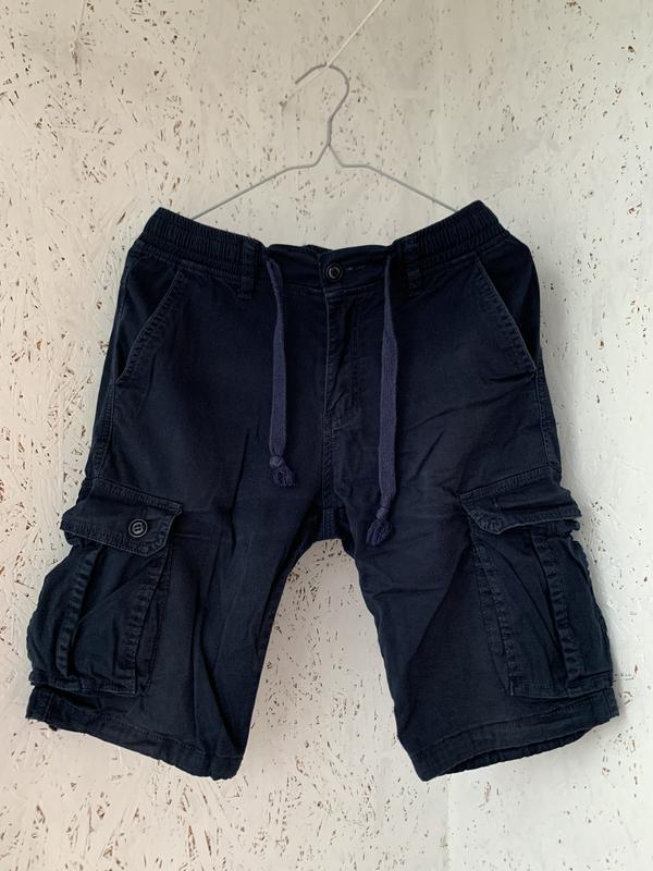 Мужские шорты карго темно-синего цвета в отличном состоянии. Размер: 31. Замеры: Полуобхват талии - 38,5 см Полуобхват бедер - 46,5 см Внутренний шов - 27 см Длина внешнего шва - 51 см