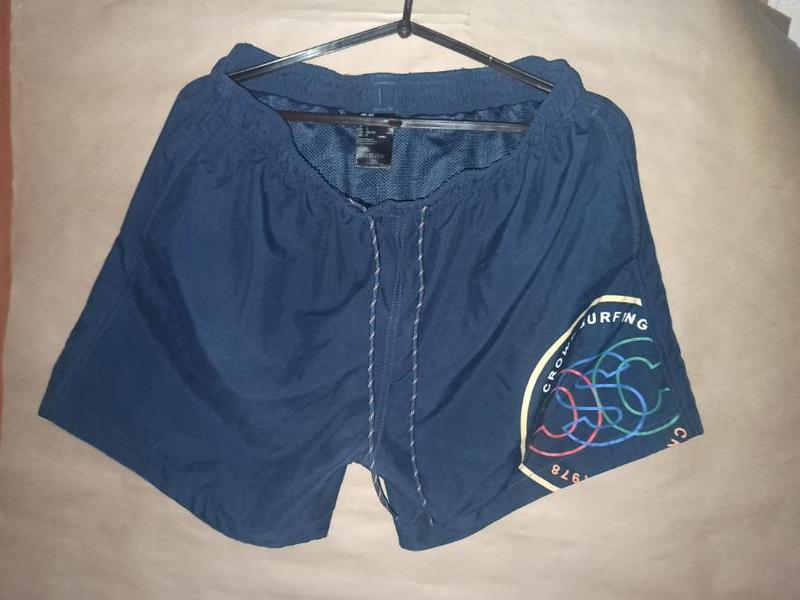 h&м шорты оригаминал разм вказано L,новые, Vi кто не пользовался.Темно синий колip.Замipы длина 40 см,Полуобхват пояса по резинке в нерастянутом виде 41 см(тянется хорошо),ширина штанины снизу 33 см, б примерно 57 см. Оплата на карту.