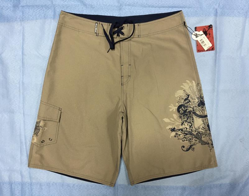 Оригінальні швидковисихаючі шорти чоловічі пляжні , купальні , для водних видів спорту американського бренду First Wave , вироблені во Вьєтнамі , матеріал : 100% поліестер ! В талії затягується та фіксується шнурком , пояс на липучці , в середині кишеня , є бокова кишеня на липучці ! Розміри: US ( 34 ) : ПОТ - 44 см, ПОБ - 57 см, довжина - 60 см , посадка - 33 см, напівширина штанини ( низ ) - 33 см ; US ( 36 ) : ПОТ - 46 см, ПОБ - 59 см, довжина - 61 см , посадка - 34 см, напівширина штанини ( низ ) - 34 см .