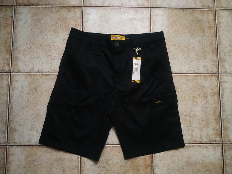 многофункциональные рабочие/трекинговые/тактические шорты Workwear(Ireland)удобный эргономичный крой,размер 36 M/L ширина в поясе от 46 см и тянется до 48 см,цвет черный,материал 65% полиэстер+35% котон,6 карманов,надежная фирменная фурнитура YKK,состояние новые/бирки