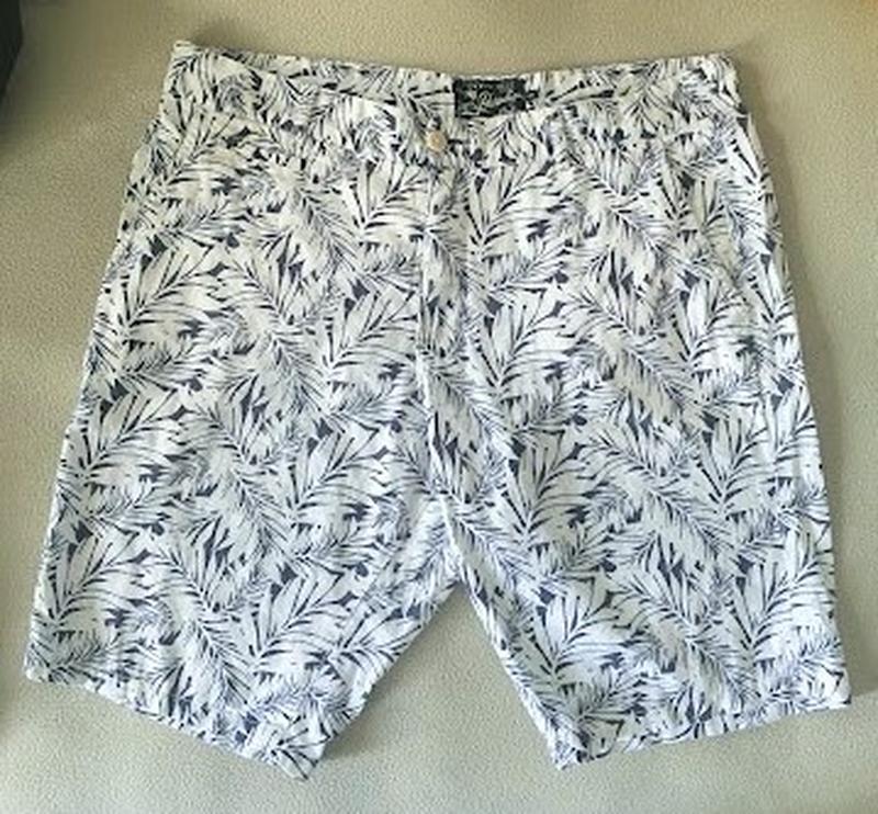 Брендовые шорты Celio - 100% Лен Эвро размер 8 Цвет белый+синий Добротные, выглядят дорого Отличное качество! Пояс 49 см Посадка спереди и сзади 30 см/44 см В стегнах 61 см Длина по боку 52 см Длина в середине 27 см Ширина штанини 26 см 4 больших кошени, и две потайные маленькие Как новые Торгу нет