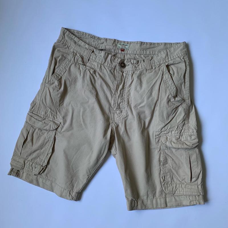 Плотный материал, насыщенный цвет и практичное исполнение изделия, базовая одежда на лето. 100% хлопок, размер по сборке W34, состояние - идеальное. Мерки: полупояс 44, посадка 24, полубедра 57, выход 26, длина 53. 850 грн На фото рост 170, вес 60.