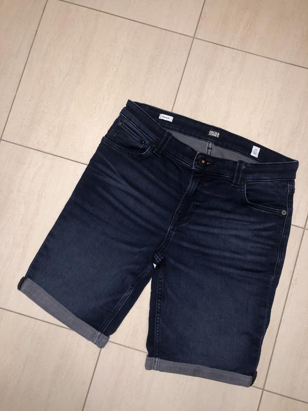 Темно-синие шорты на возраст 14-15 лет, пояс регулируется резинкой на пуговицах. Эффекты отсутствуют.