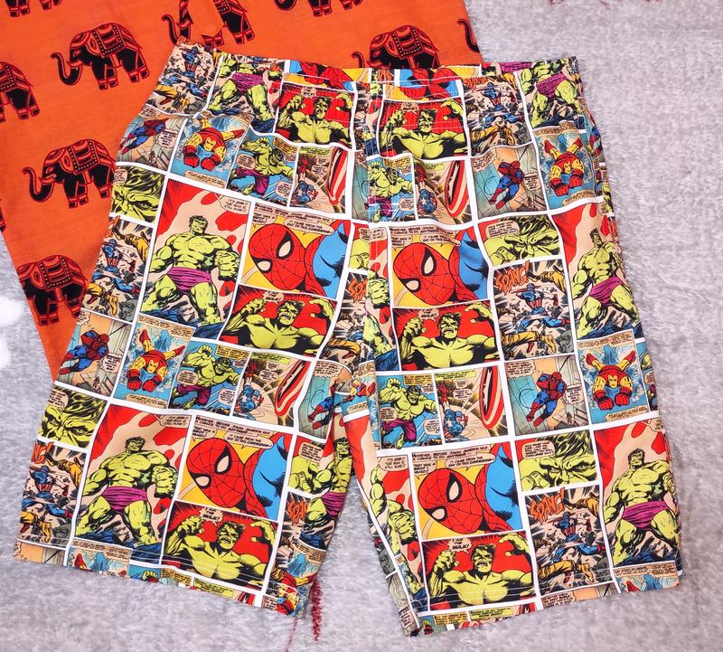 Мужские яркие пляжные длинные шорты с принтом р.52 marvel плавки купальные