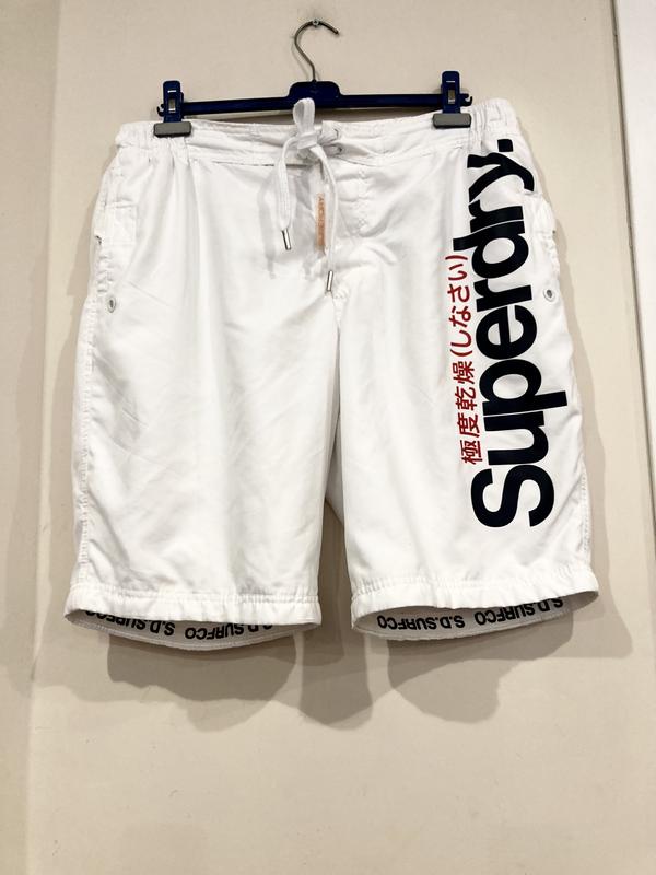 Супер шорти білого кольору дорогого бренду-Superdry”. Довжина-56 Обʼєм в поясе максимально-100см, затягується на талії на шнурок.