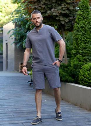 No2026 костюм размер:44-46,48-52,54-56 тканина: льон-жатка цвет: серый, беж, черный, масляная