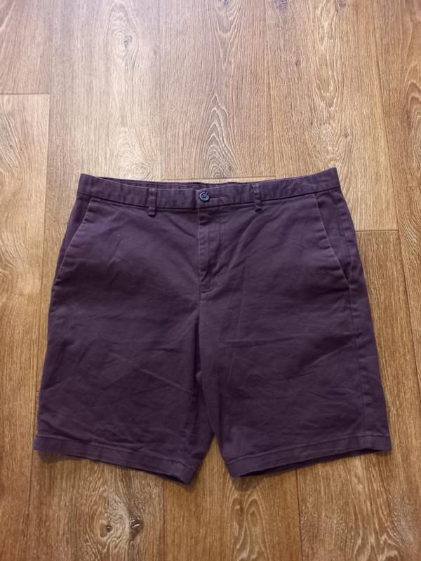 Мужские фирменные шорты " TU " В Хорошем состоянии , цвет тёмно - бордовый , размер 33 / 34 , материал средней плотности немного тянется 98 % Коттон , 2 % Еластан . Производство Бангладеш . Пот - 45 , Поб - 54 , Посадка спереди - 28 , Сзади - 40 , Длина - 46 , Ширина штанины внизу - 26 .