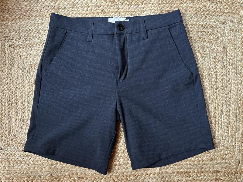 Стильні чорні шорти. До складу входять бавовна та льон. Принт тканини - у клітку. Попереду декоративні защипи. Подвійна застібка на гудзик та блискавку. Шльовки для пояса. З боків дві кишені. Позаду дві прорізні кишені з гудзиками. Брюки з відворотами. Розмір S. Заміри: Півобхват талії - 38 см Півобхват стегон - 50 см Довжина - 40 см Крокова - 20 см Посадка спереду/ззаду - 26/36 см 52% cotton, 48% linen. Pockets lining: 65% polyester, 35% cotton Виробництво: Бангладеш Нові. Умови відправлення та покупки: 🚖Відсилання всіма логістичними компаніями 💳Оплата на карту 💯Безпечна оплата Shafa