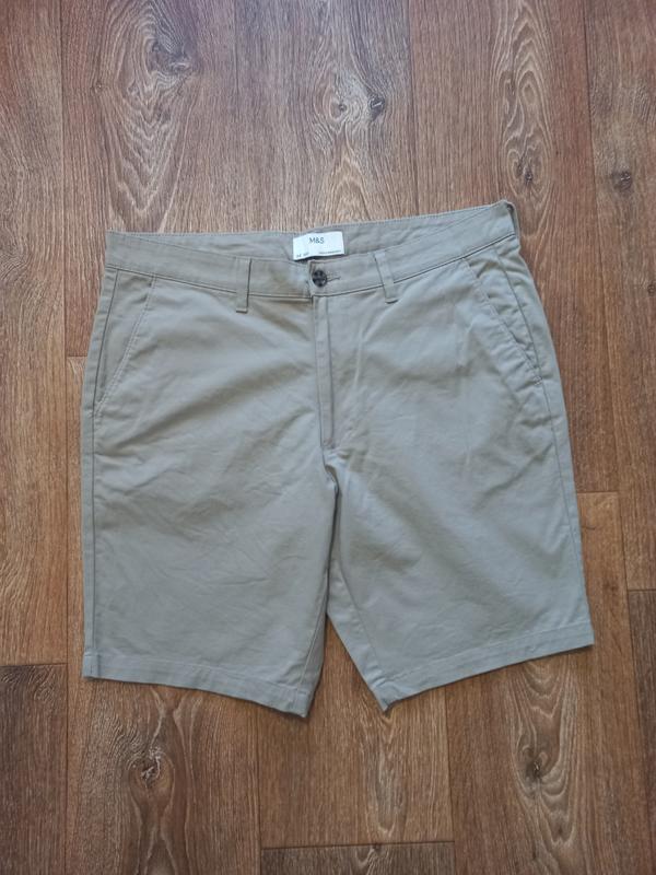 Мужские Шорты В Отличном состоянии без дефектов выглядят как Новые , цвет бежевый , размер 33 / 34 , материал средней плотности тянется . Состав : 98 % Коттон , 2 % Еластан . Сделано в Бангладеш . Пот - 47 , По бёдрам - 55 , Посадка спереди - 28 , Сзади - 40 , Длина - 48 , Ширина штанины внизу - 24 , 5 .