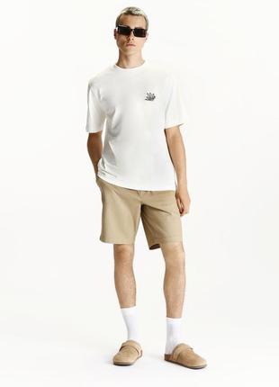 Нові чоловічі шорти-бермуди від іспанського бренду Lefties. Гарний бежевий колір. Класичний пояс, сзаду резинка, 2 бокові кишені, 2 задні. Нам не підійшли за розміром (маломірять). Підійдуть на М-L. Орієнтуйтесь на заміри. ПОТ 42 см (до 47) ПОБ 54 см Довжина по боку 48 см Довжина шаг 22,5 см