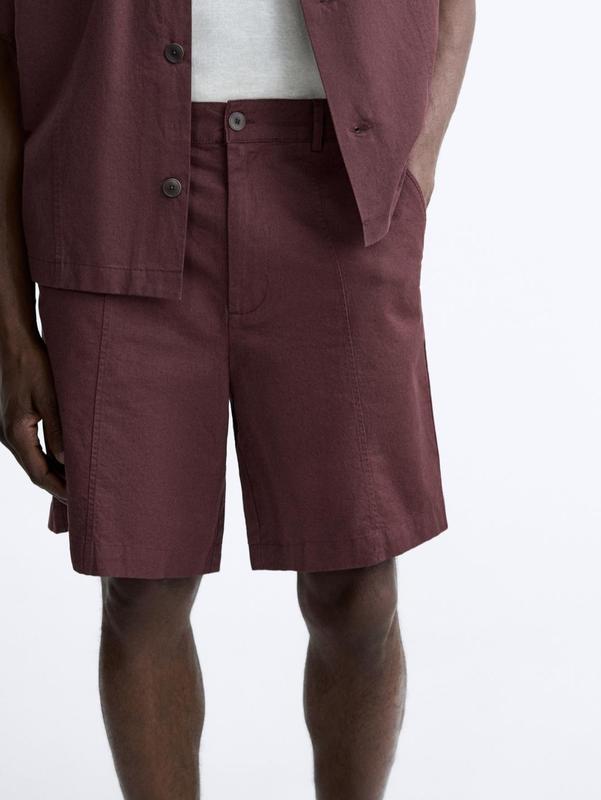 Мужские шорты бермуды ZARA Цвет: марсала (бордо) Склад: 92% бавовна, 8% льон Способ застывания: пуговица + молния В наличии размер L (32, 44). Замеры: пояс - 42 см длина - 49 см крок - 20 см посадка спереди - 32 см посадка сзаду - 43 см ширина штанги снизу - 32 см Отправка: – безпечна оплата – наложенным платежом по предоплате 100 грн