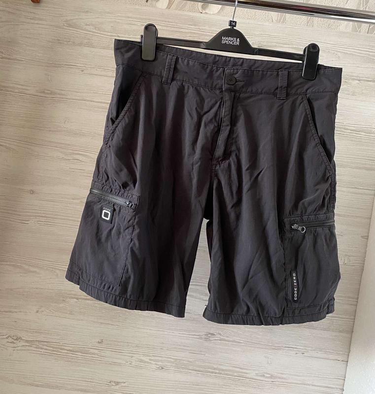 Шорты Code, размер "L".Пояс полуобхват-48см,бедра полуобхват-65см,длина-50/24см,посадка-30/41см, полуобхват штанины -35/30см,эластичные,тянутся.