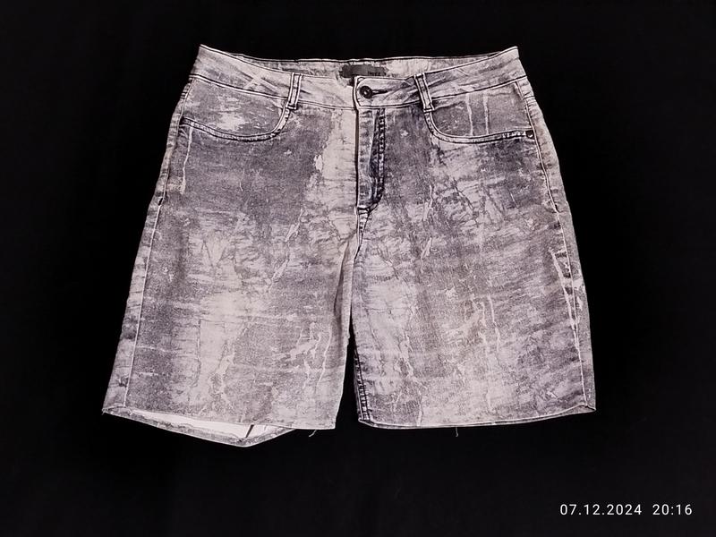 Серые лёгкие шорты варенка, резанные из штанов в очень хорошем состоянии. Полуобхват по поясу тянется от 40 см до 47 см, высота посадки 25 см, длина по боковому шву 45 см. Ткань тянется. Модель 5512Ю