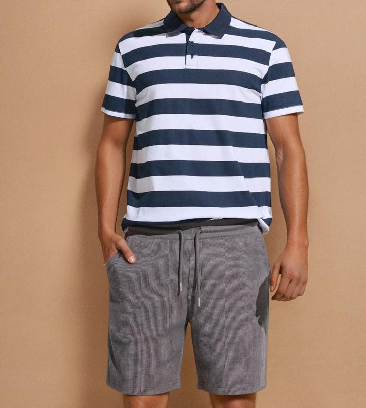 Фирменные шорты на завязках. Посадка средняя, два кармана сбоку, резинка в поясе. Материал: 60% хлопок, 40% полиэстер. Цвета: серый, бежевый.