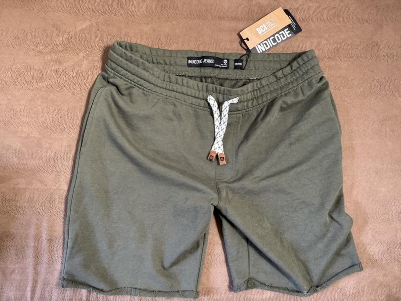 Оригінальні нові стильні практичні і приємні до тіла щорта від INDICODE Jeans, зроблені за всіма євростандартами, в темнооливковому кольорі ..Розмар на фото М стандарт , по талії у вільному стані -44см, , гарна резинка і шнуровка всередині, в складі (60% бавовна 40% поліестер ) у розмірі Л на 1 мм більші, довжина вниз -45 см.,
