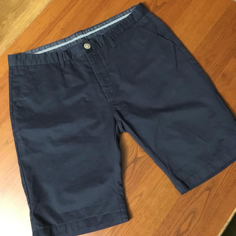 состояние идеальное известного бренда 100% катон темно синего цвета застегивается на пуговицы есть два боковых кармана, сзади два кармана на пуговицах есть шлевки для ремня ткань плотная мягкая не тянется замеры пот 46 поб 59 длина 52 низ 25