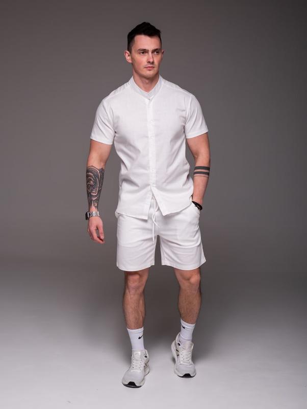 Чоловічий комплект сорочка + шорти льон білий Ціна 1100грн Розміри: S,M,L,XL Матеріал: льон 100%. Сорочка комір - стійка, застібається на гудзики. Шорти 2 кишені , пояс - резинка + шнурок. Виробник: Україна 🇺🇦