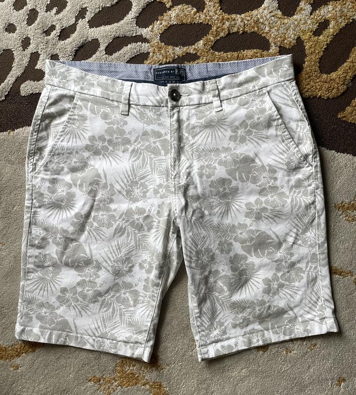 Фірмові літні шорти 🩳 в чудовому стані. Тканина тягнеться, в поясі ні. Гарна комфортна модель. Заміри: довжина 51 Пот 45 Поб 57 по низу 26 посадка 30/34.