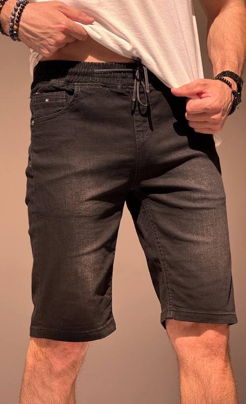 Джинсовые шорты. Пояс резинка, можно дополнительно зафиксировать шнурком Размер 31. Длина 54см, шаговый шов 28см Пояс резинка 37-48см Полуобхват бедер 51см Ширина штанины сверху 28см