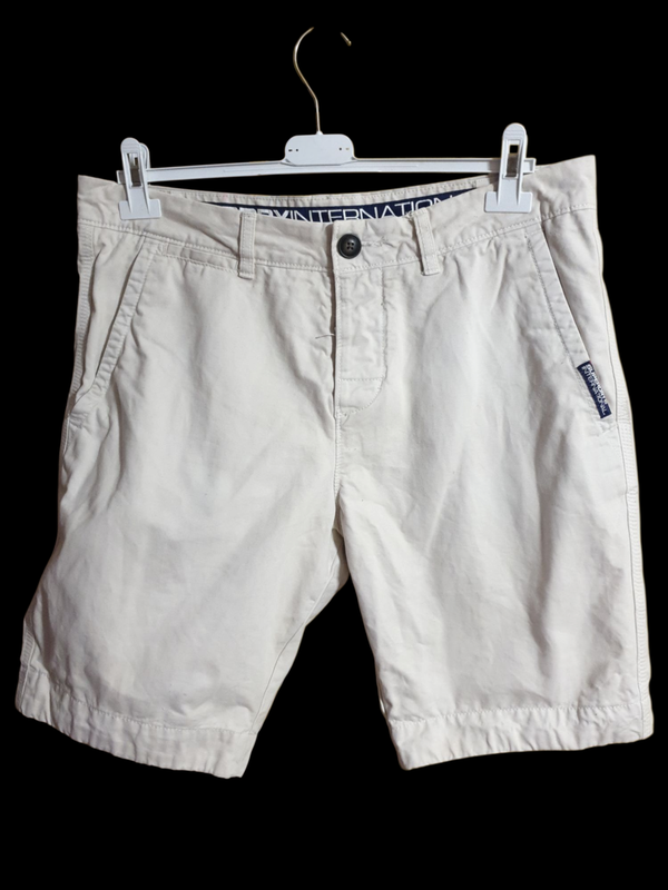 Брендовые шорты на пуговицах SUPERDRY в отличном состоянии. Материал мягкий, приятный наощупь, как бархатный; молочный цвет. Производителем заявлен размер L. Пояс 43,5 см., посадка спереди 28,5 см., ширина бёдер 51 см., посадка сзади 38,5 см., длина внешнего шва 50 см., ширина штанины вверху 29,5 см., ширина штанины внизу 22 см.. Торг уместен. Смотрите другие мои объявления. Пишите - договоримся.