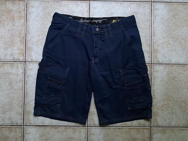 фирменные рабочие шорты Snickers(Sweden)эргономичный тактический крой, размер 48 ширина в поясе от 44 см и тянется до 45 см,длина по наружному шву 54 см, ширина штанины на выходе 28 см, цвет синий, материал 65% полиэстер 35% котон, 2 боковых кармана 2 задних + многофункциональные карманы на бедре для мелкого инструмента, надежная фирменная фурнитура YKK, состояние отличное 5+