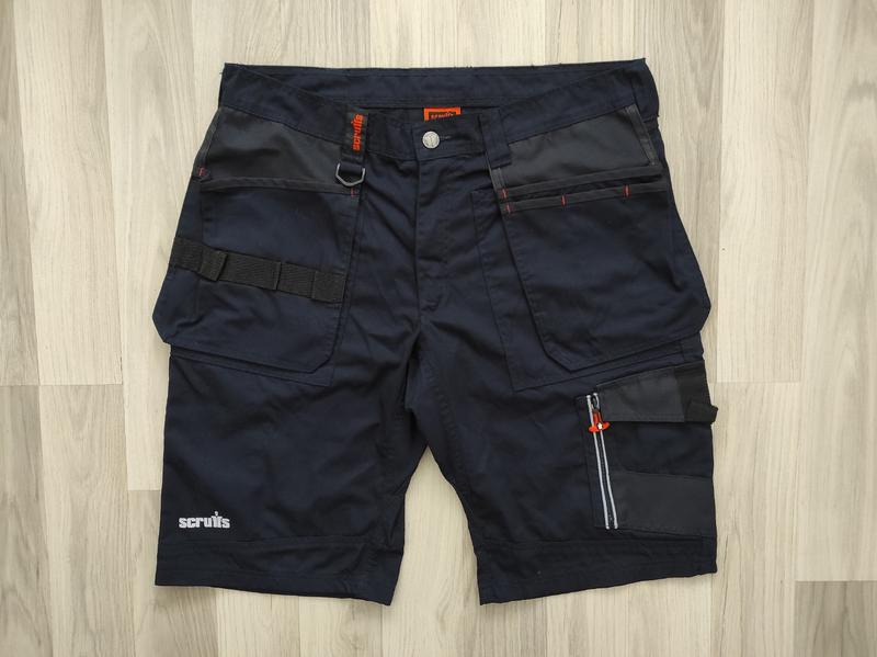 Стан - идеальный, 5++/5. Размер - XL. Очень качественные Рабочие Шорты. Присутствующие свыкающие карманы, светоотражатели и петли для инструментов. Изготовлены из качественного, долговечного материала. Длина по внешнему шву - 58 см. Полуобхват талии - 43 см. Низ штанини - 27 см.