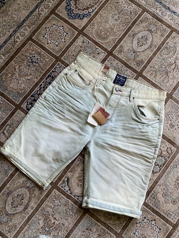 Мужские джинсовые шорты в светлом цвете с выцветающим эффектом. Есть потертость на бирке и нуждаются в стирке (небольшие бутылки от пилюки) на последних фото видно. Замеры: Полуобхват по талии - 44 см Пол обхват бедер - 56 см Длина - 55 см Полуобхват брючины снизу -25 см
