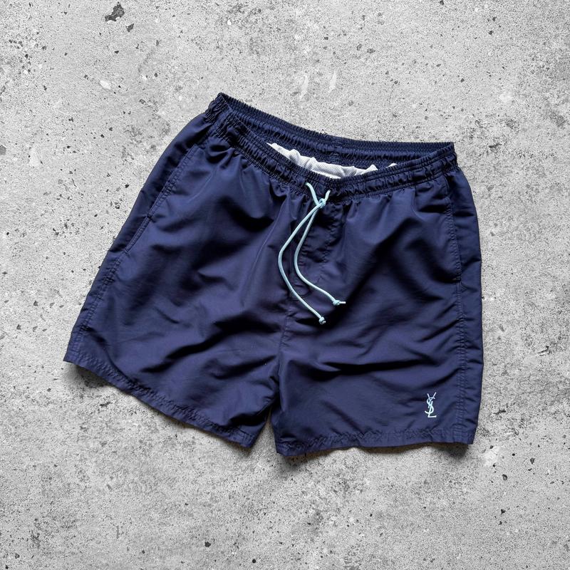 Yves saint laurent mens vintage navy blue ysl logo swim shorts trunks чоловічі, вінтажні,...