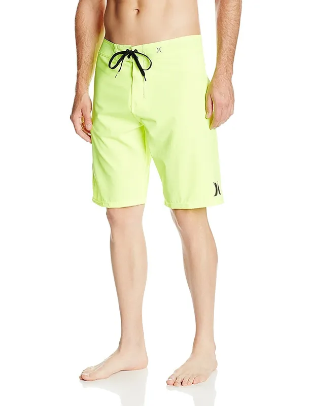 Размер 30 * Желтый * 92% полиэстер/8% спандекс * Застежка на завязки * Машинная стирка * Однотонные шорты-борды с контрастной вышивкой и логотипами на поясе и подоле * Скрытый боковой карман на молнии