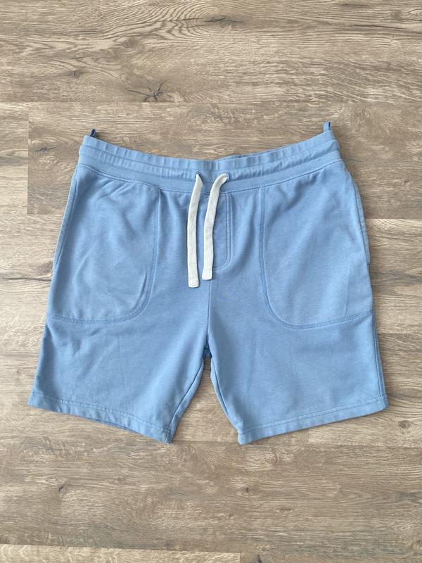 Шорти в чудовому стані, без дефектів Розмір L Склад: 100% бавовна Пот 44, тягнеться до 55 Поб 56 Висота посадки спереду 32, ззаду 38 Довжина 47 Ширина штанини вгорі 32, внизу 27