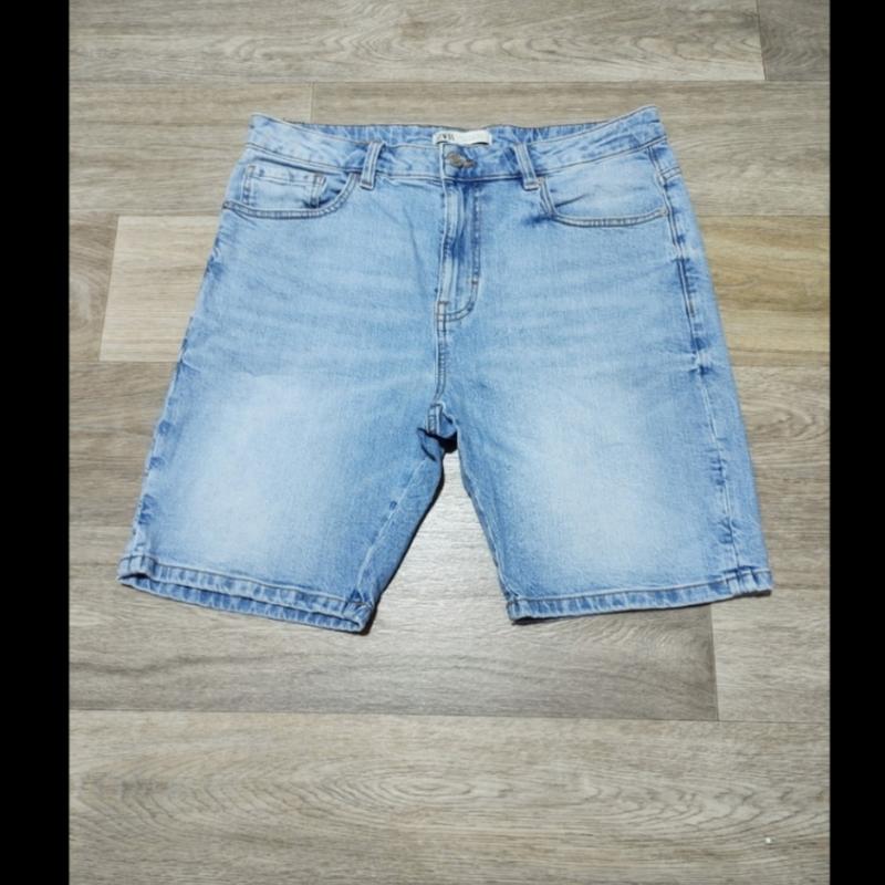 Мужские джинсовые шорты "ZARA" в отличном состоянии, без дефектов. Материал плотный, немного тянется; состав: 99% хлопок/ 1% эластан. Цвет: светло-синий. Пот 45-47 ; длина 51 ; посадка 29 ; поб 55 ; ширина штанины внизу - 24,5 см.