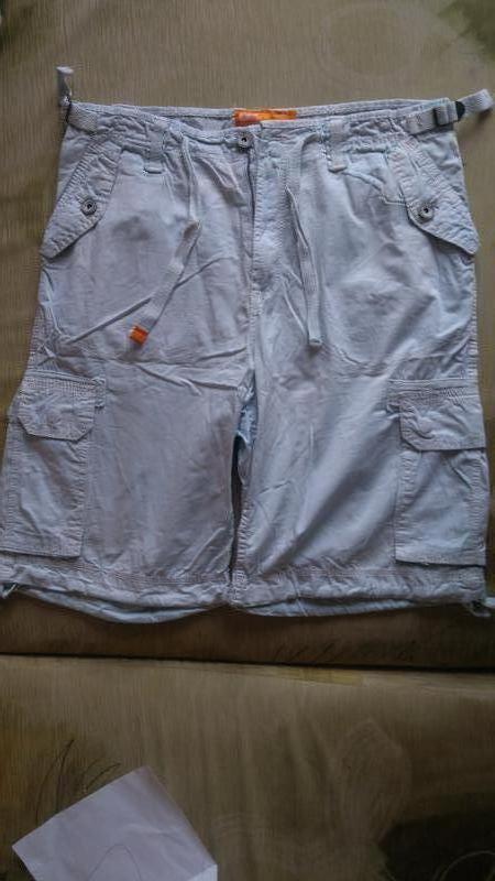 Шорти длинные хб, накладные карманы на кнопках, другие на пуговицах, регулировки на талии Цвет еще светлее, очень красивый голубой цвет, фото не передало