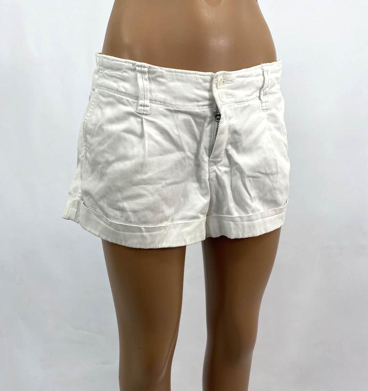 Шорты фирменные Abercombie&Fitch, белые, Разм 8 (S), Отл сост Качественные, хорошие шорты Размер: 8 (S) Cостав: 98% сotton, 2% elastane Замеры: пояс (см) - 44 ПОБ (см) - 52 шаговый шов (см) - 8 ширина штанины снизу (см) - 32 ширина штанины в бедре (см) - 32 длина (см) - 28 посадка спереди (см) - 27