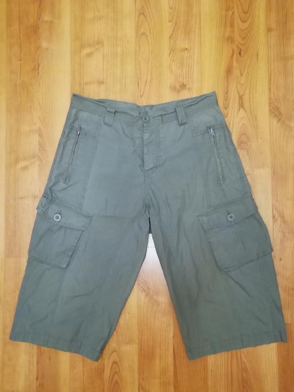 Мужские шорты серого цвета, Накладные карманы на пуговицах Вверху карманы на молнии Сзади карманы на пуговицах ПОБ-59 ПОТ-44 Длина-72