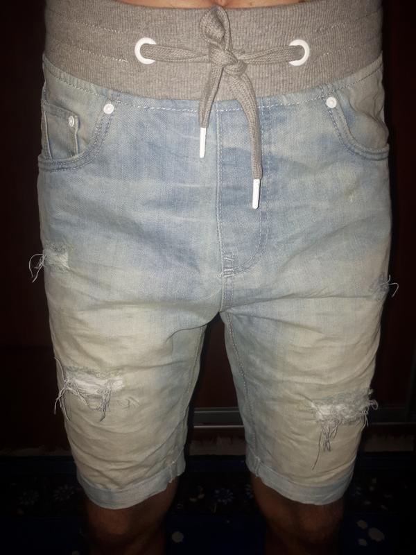 Модные джинсовые шорты FSBN в идеальном состоянии. На поясе предусмотрена широкая резинка со шнуровкой, за счет которой шорты садятся даже на размер w32, хотя заявленный размер S. Характерная особенность данной модели слегка приспущена матня. Ориентируются на замеры: пояс - 38, но резинка может потянуться на несколько см, бедра - 47, длина - 56, выход - 20.
