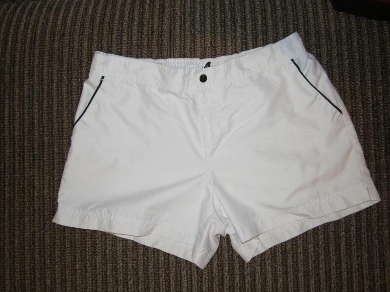 Короткие белые шорты для занятий спортом, по бокам имеют карманы. р-р - L\G, 12-14 Замеры: ПОТ-42см, ПОБ-53см, длина-33см