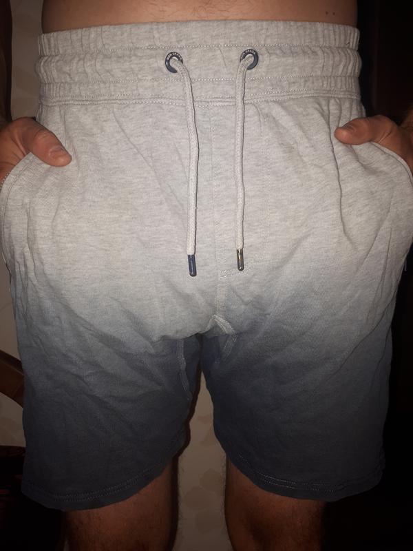 Классные стильные котоновые шорты Non Grada. Пояс на резинке плюс утяжки. Спереди два кармана на молнии, сзади два кармана на кнопках. Необычная расцветка - верх светлый, низ темный. Размер S. Замеры: пояс - 35 (тянется до 41), длина - 47, бедра- 47, низ - 25.