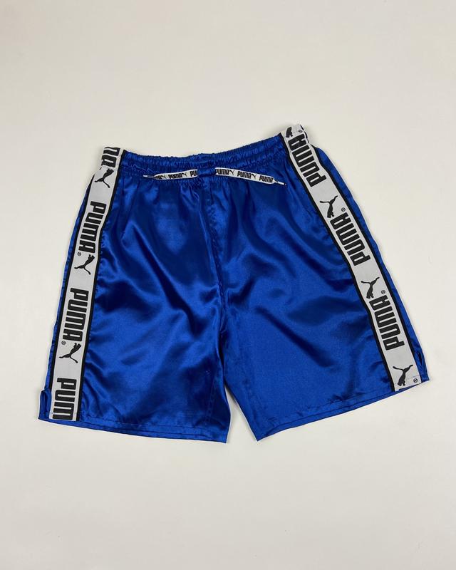 Круті шорти з лампасами, приємний темно-синій блискучий колір, приємний на дотик матеріал Size L В цілому стан ідеальний, але є невеликий момент, вказав на останньому фото Напівобхват талії 35, тягнеться до 50 Висота посадки 32 Довжина 47 Ширина штанин на виході 30