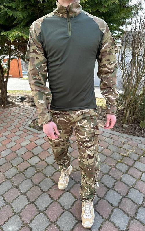 Костюм убакс + штани мультикам Убакс: -Тактическая рубашка убакс имеет приталенный крой. Можно надевать под кофту, также подходит для носки под бронежилетом. -Материал торса - кулмакс -Материал рукавов - рипстоп -Застегивается на половинную молнию. -Манжеты рукавов на липучке. -Сезон: весна/осень. Штани: - Материал - саржа - Манжеты на липучках - Дополнительный карман на голени - Дополнительно укрепленные колени и седалищеная часть изделия - Сезон весна\осень
