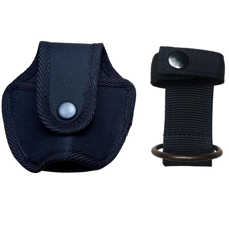 Комплект чехол для наручников + держатель для дубинки Чехол предназначен для ношения металлических наручников типа БР-МУ-92. Так же может использоваться с другими наручниками, близкими по конструкции и размерам. Наручники должны быть соединены двумя звеньями со свободным вращением! Для наручников с жестким соединением чехол не подходит! Чехол фиксируется на поясном ремне вертикально под прямым углом. Рекомендуемая ширина ремня - 3-5 см (портупейный, тактический). Чехол изготовлен из водонепроницаемой ткани (полиэстер) D600 PVC. При вытянутых наручниках чехол хорошо держит форму. Держатель дубинки изготовлен из качественного полиестера с пластиковой вставкой посередине и металлическим держателем. Предназначен для ношения на ремне шириной до 5 см, что позволяет использовать с большинством тактических ремней. Застёгивается на кнопку. Цвет: черный.