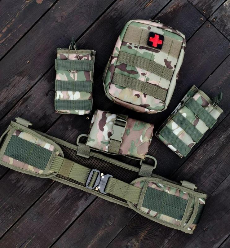 Кілька примірників у наявності В комплекті Розвантажувальний ремінь РПС 1 шт Тактична сумка для сбросу пустих магазинів 1 шт Нейлоновий підсумок для тактичної аптечки 1 шт Підсумок для одного магазину АК або М16 2 шт 1.Розвантажувальний ремінь РПС Без плечиків!!! Довжина ременя регулюється від 110 см до 95 см. Розмір підкладки 90*10 см РПС оснащений кріпленнями для подальшого використання плечиків та ремнем "кобра" на магнітній застібці. Ремінь змінний. В середину вшита помякшуюча підкладка що слугує додатковим демфером. РПС оснащений дихаючою 3D сіткою з внутрішньої сторони, що робить його більш комфортнішим у використанні. С зовнішньої сторони система моллі з міцної та надійної поліамідної стропи, для кріплення підсумків та іншого додаткового спорядження. Все прошито армованими нитками, що підвищує термін служби виробу. 2Тактична сумка для сбросу пустих магазинів. Розмір: 27 х 25 см Виготовлена з водонепроникної тканин Оксфорд 600D, якісна фурнітура, система молі. 3 Нейлоновий підсумок для тактичної аптечки Характеристики: Матеріал: Водонепроникна міцна тканина 600d Кріплення: на стегно, MOLLE Зовнішні габарити: 19 см х 16 см х 10 см 4 Підсумок призначається для носіння одного магазину АК або М16, як на розвантажувальних жилетах і бронежилетах, так і на будь-якому спорядженні, оснащеному кріпленням MOLLE. На звороті підсумка розташоване кріплення MOLLE з фіксацією ремінців на кнопці. Матеріал Cordura 16×7×3,5 см Матеріал: Cordura розмір: Мультикам