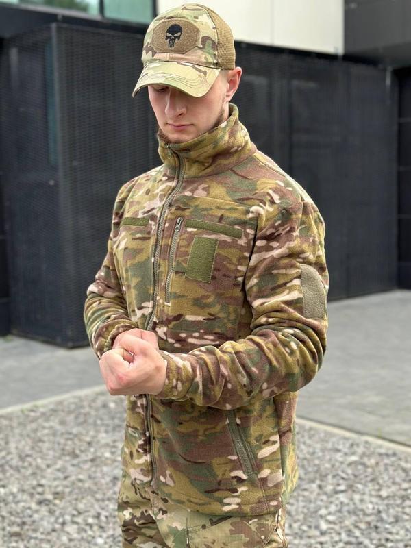 Кілька примірників у наявності фліс плотність 300 Кофта може використовуватись як верхній одяг, щоб носити її без куртки. Вона повністю виконує її роль через те, що має достатньо теплий ка якісний матеріал, що прирівнюється до курток. Щільна, тепла, при цьому дуже легка та зручна флісова кофта із замком блискавкою. Можна носити в будь-яку пору року, приємна на дотик тканина відмінно відводить вологу від тіла і зберігає суху шкіру. велкро панелі під шеврони Розмір: 46