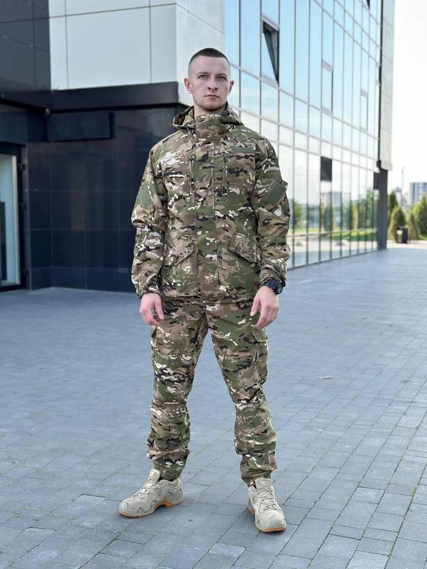 Кілька примірників у наявності Військово-тактичний костюм Гірка мультикам: Призначений для використання різноманітними силовими підрозділами, мисливцями, рибалками, екстремалами. Виготовлений з інноваційної тканини Ріп-Стоп, що забезпечує практичність, зносостійкість та комфорт використання. Матеріал має гарну вентиляцію, гарний захист від вітру і дихає. У місцях підвищеного навантаження (плечі, коліна, лікті) використовується подвійний шар матеріалу. Підгумовані системи стяжок забезпечують прилягання костюма і запобігають вітринню на вітрі. Куртка оснащена безліччю кишень, планкою для захисту від вітру, блискавкою та капюшоном. Штани мають еластичний пояс, кишені, двошарові коліна та задню частину. Доступний широкий розмірний ряд. Переваги включають практичність, зносостійкість, властивості, що дихають, камуфляж, комфортність, стійкість до забруднення і зминання. Розмір: 44-46